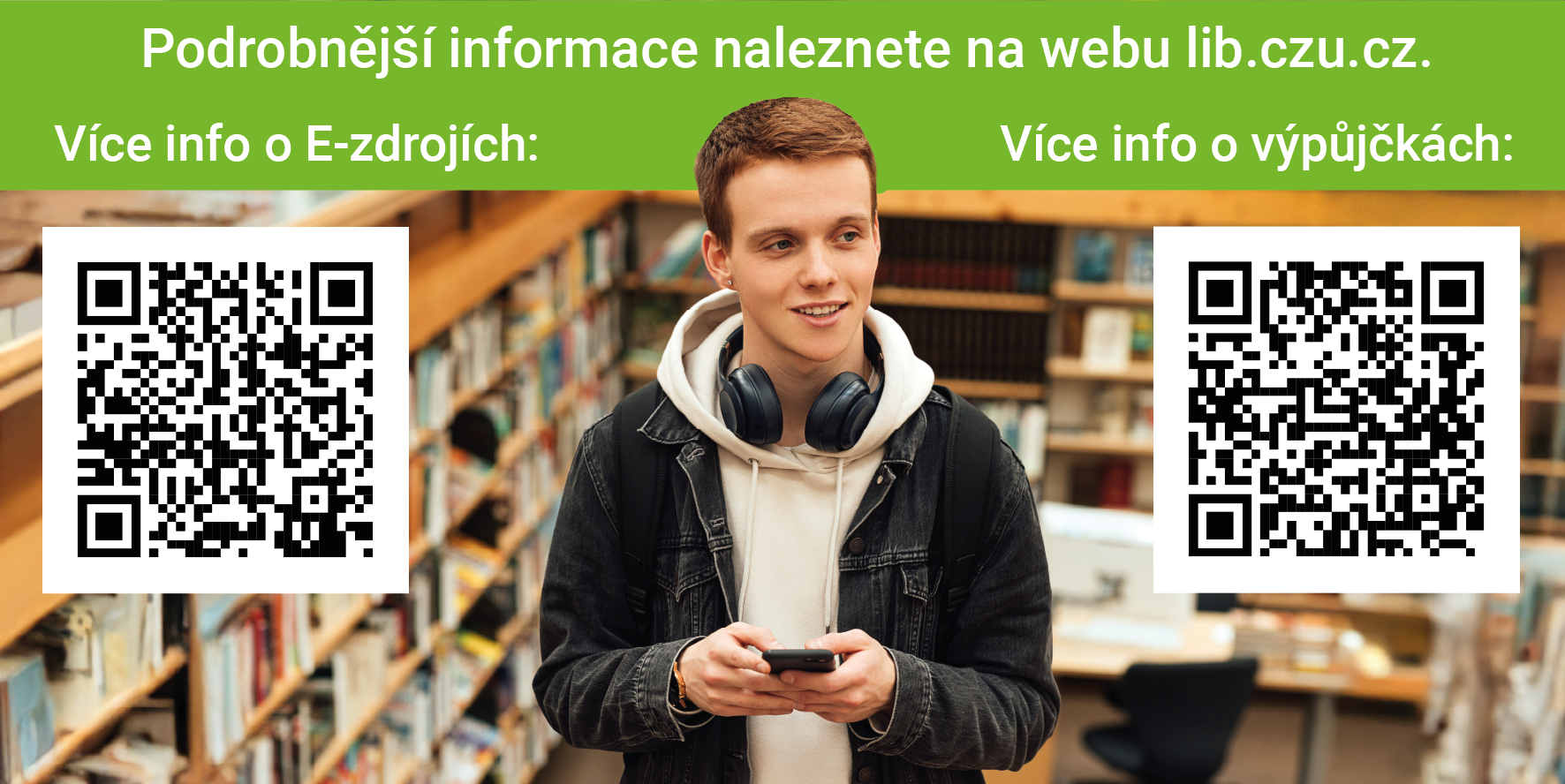Knihovna ČZU (LIB) nabízí přístup ke studijní literatuře a dalším informačním zdrojům. Přístup ke všem službám knihovny získáte po registraci u výpůjčního pultu. Registrace je pro studenty ČZU zcela zdarma, platí po celou dobu studia a je k ní nutná čipová studentská karta (viz část 2.4).